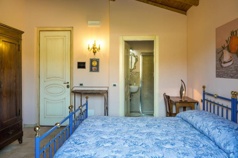 Le camere in stile rustico del Melograni sono dotate di soffitti con travi a vista. Il bagno privato è completo di asciugacapelli.