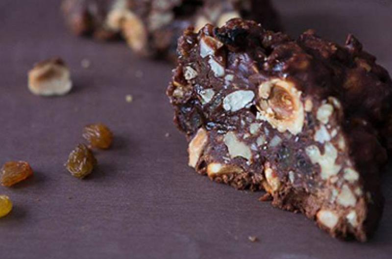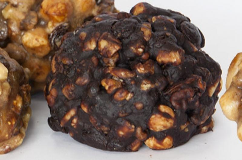 frutta secca - mandorle, noci, nocciole e cioccolato legati con miele e poca farina e profumato di