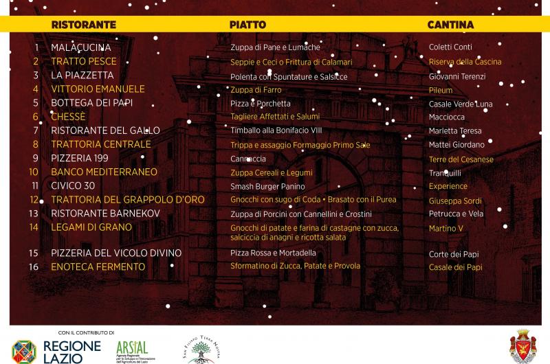 Nelle immagini sotto sono riportati i nomi dei Ristoranti del Centro aderenti all'iniziativa.